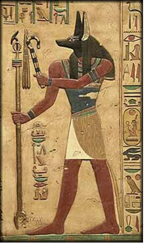 Позднее, когда Сет убил Осириса, Анубис, организуя погребение умершего бога, завернул его тело в ткани, пропитанные особым составом, сделав таким образом первую мумию. Поэтому Анубиса считают создателем погребальных обрядов, покровителем некрополей, и называют богом бальзамирования. Анубис помогал сохранить тело Осириса. Анубис также помогал судить умерших и сопровождал праведных к трону Осириса. Анубиса изображали в виде волка, шакала или дикой собаки Саб черного цвета (или человека с головой шакала или собаки).